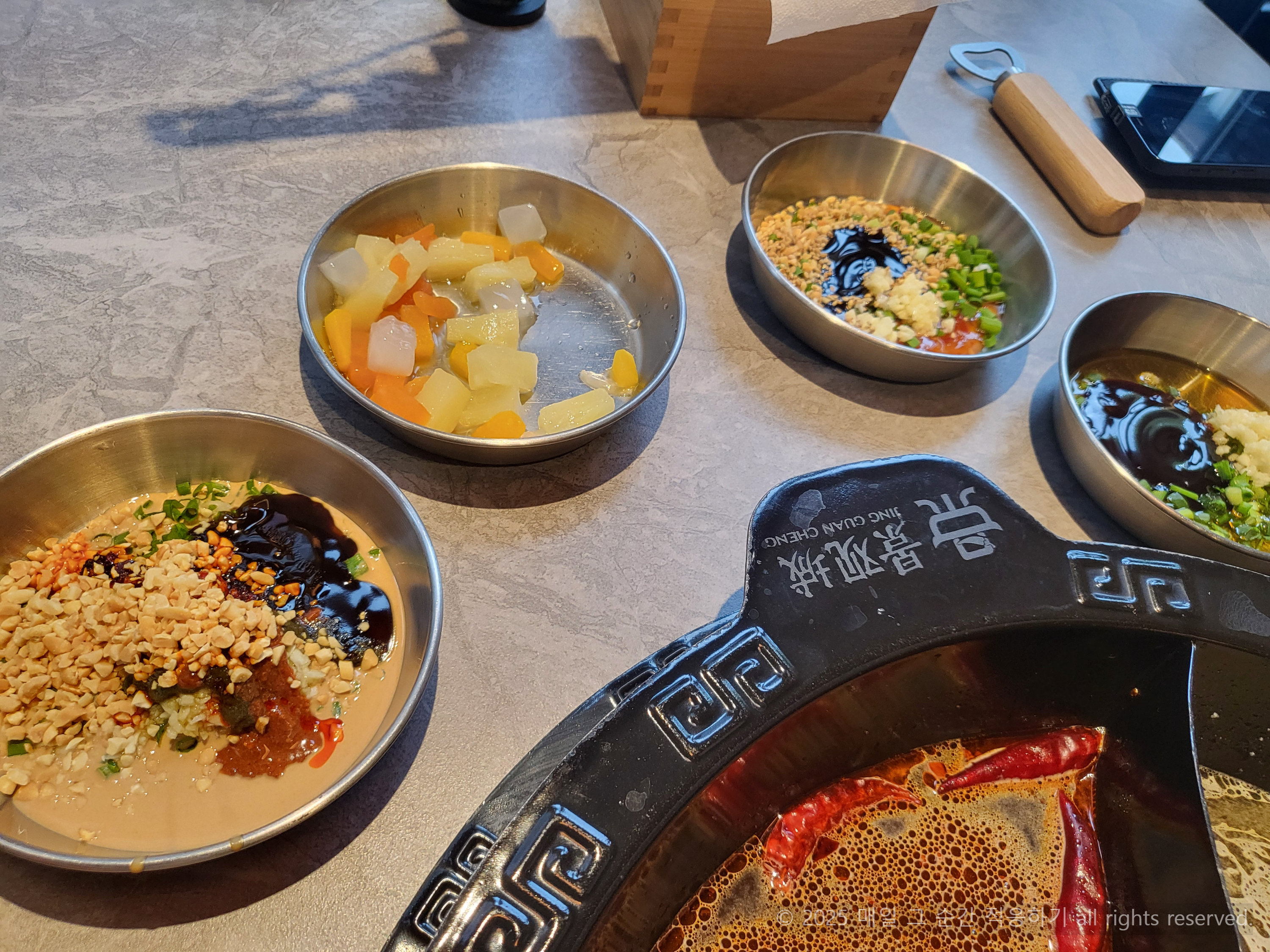 제가 하이디라오에서 제일 반했던 건 나만의 특제소스를 만들어먹을 수 있는 거였어요
