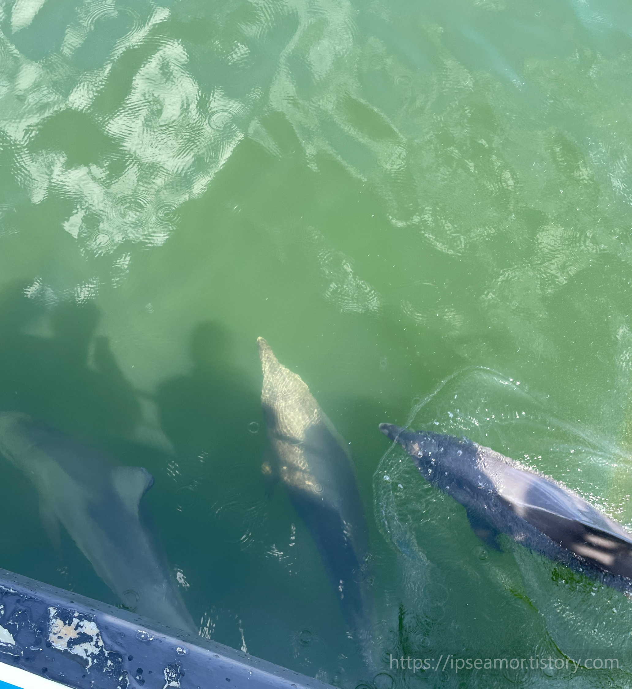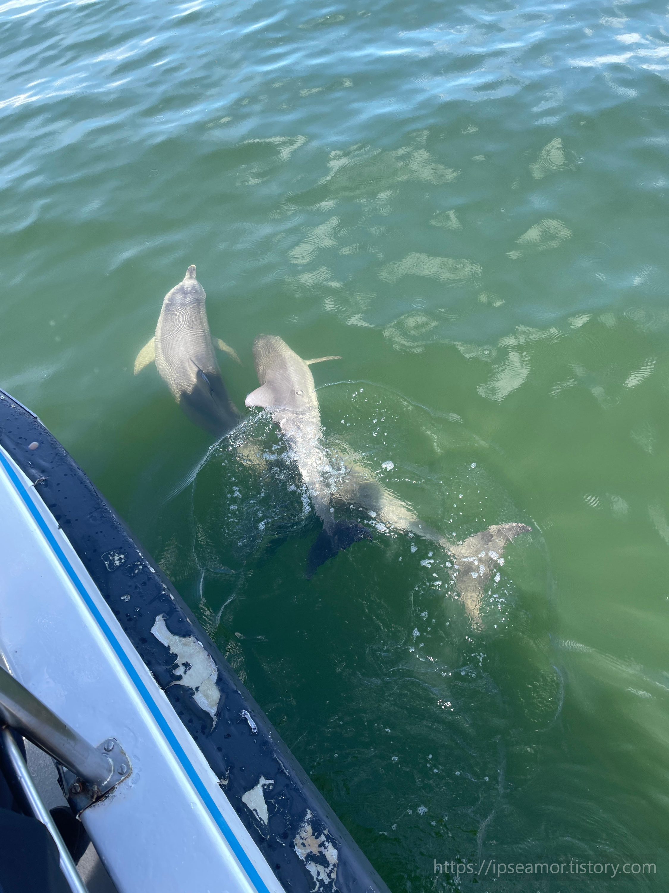 조금 기다리면 돌고래들이 나타나요..ㅎㅎㅎ 신기해요 어떻게 알고 찾아오는지