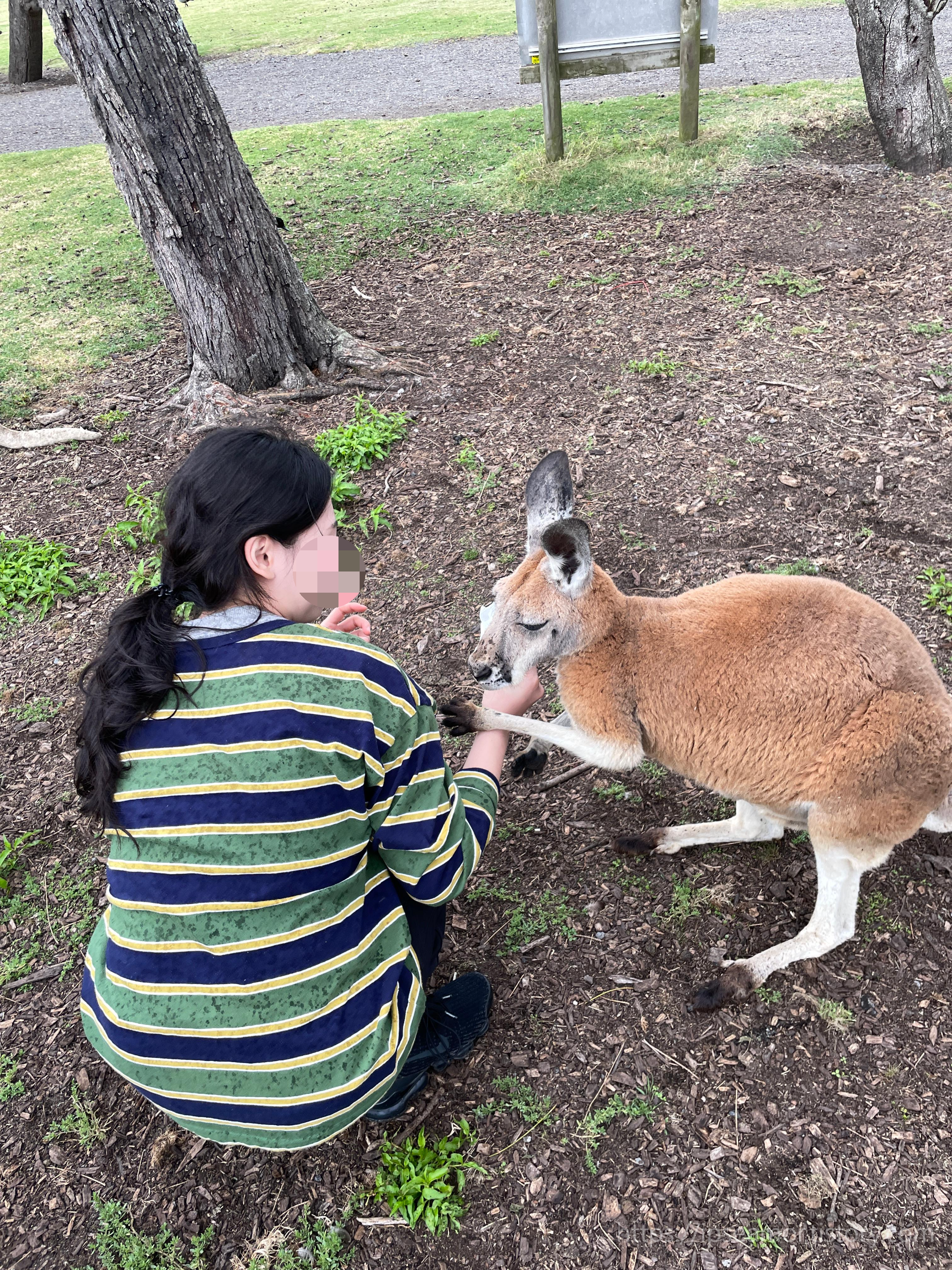 먹이가 있는 손을 계속 쥐고 있는 캥거루 ㅎㅎㅎ