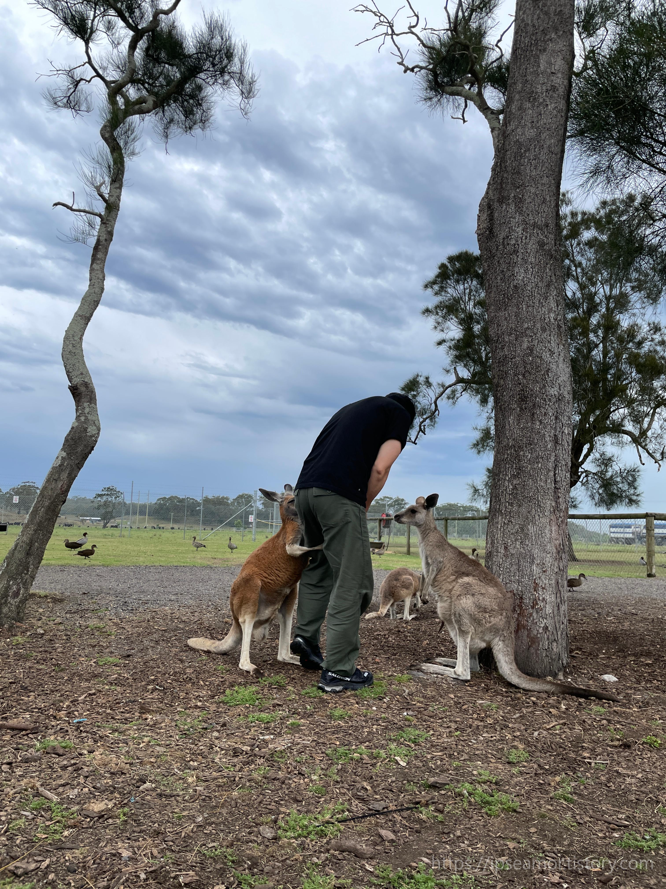 먹이 더 달라고 바짓가랑이 붙잡들고 안 놔주는 캥거루들 ㅋㅋㅋ