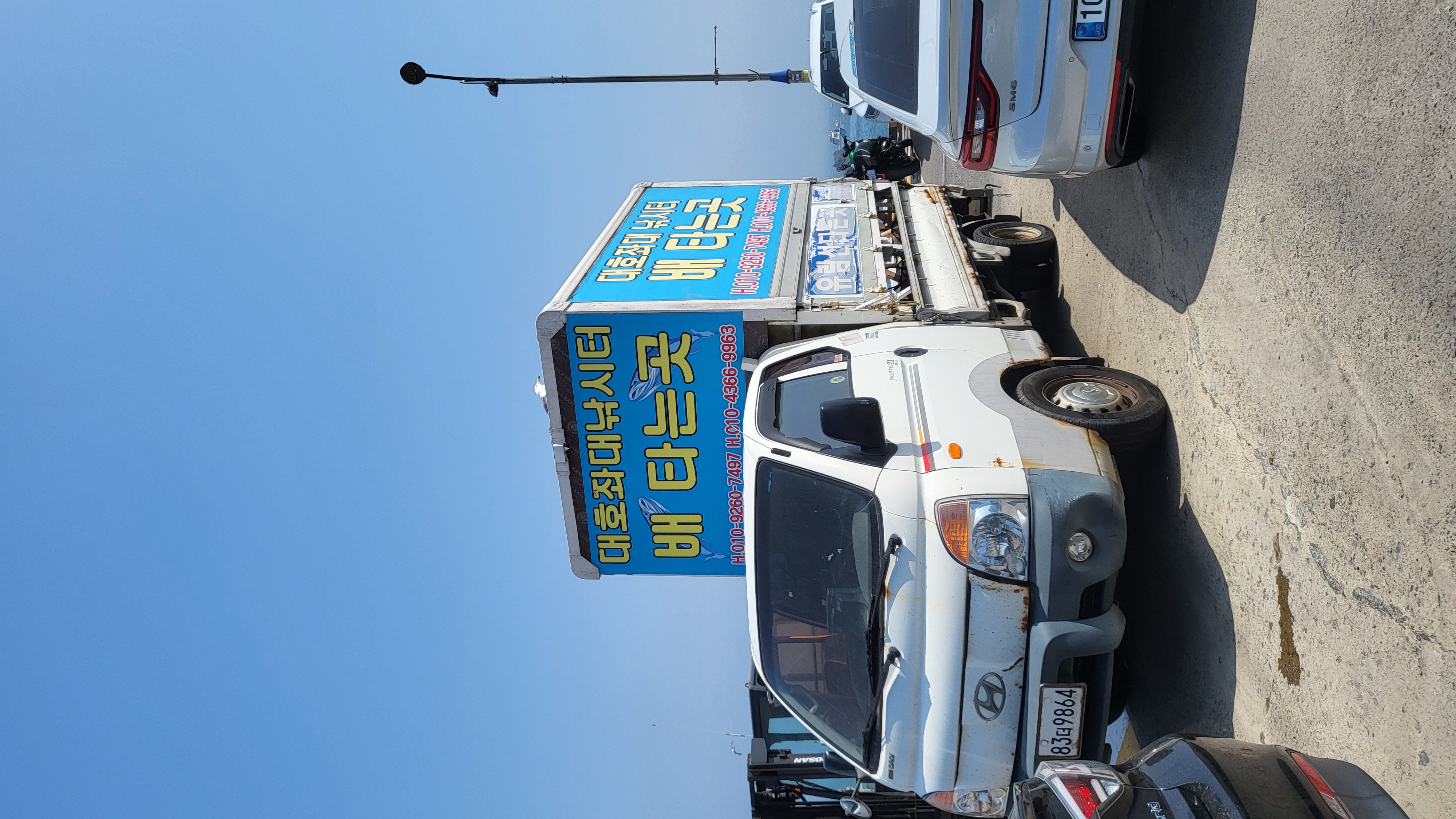 새벽에 출항을 하고 돌아온 배가 아침 9~10시부터는 횟집으로 변하여